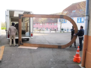 D’autres œuvres à caractère spécifique telles que bannières, enseignes, éléments de mobilier sont également traitées en collaboration avec les autres secteurs d’activité du centre de restauration.