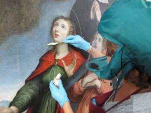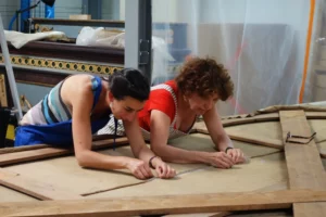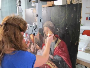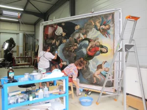 Le secteur de la restauration des peintures se charge d’intervenir sur les supports de toile. Les interventions sur les panneaux de bois seront, quant à elles, prises en charge par le secteur du mobilier.